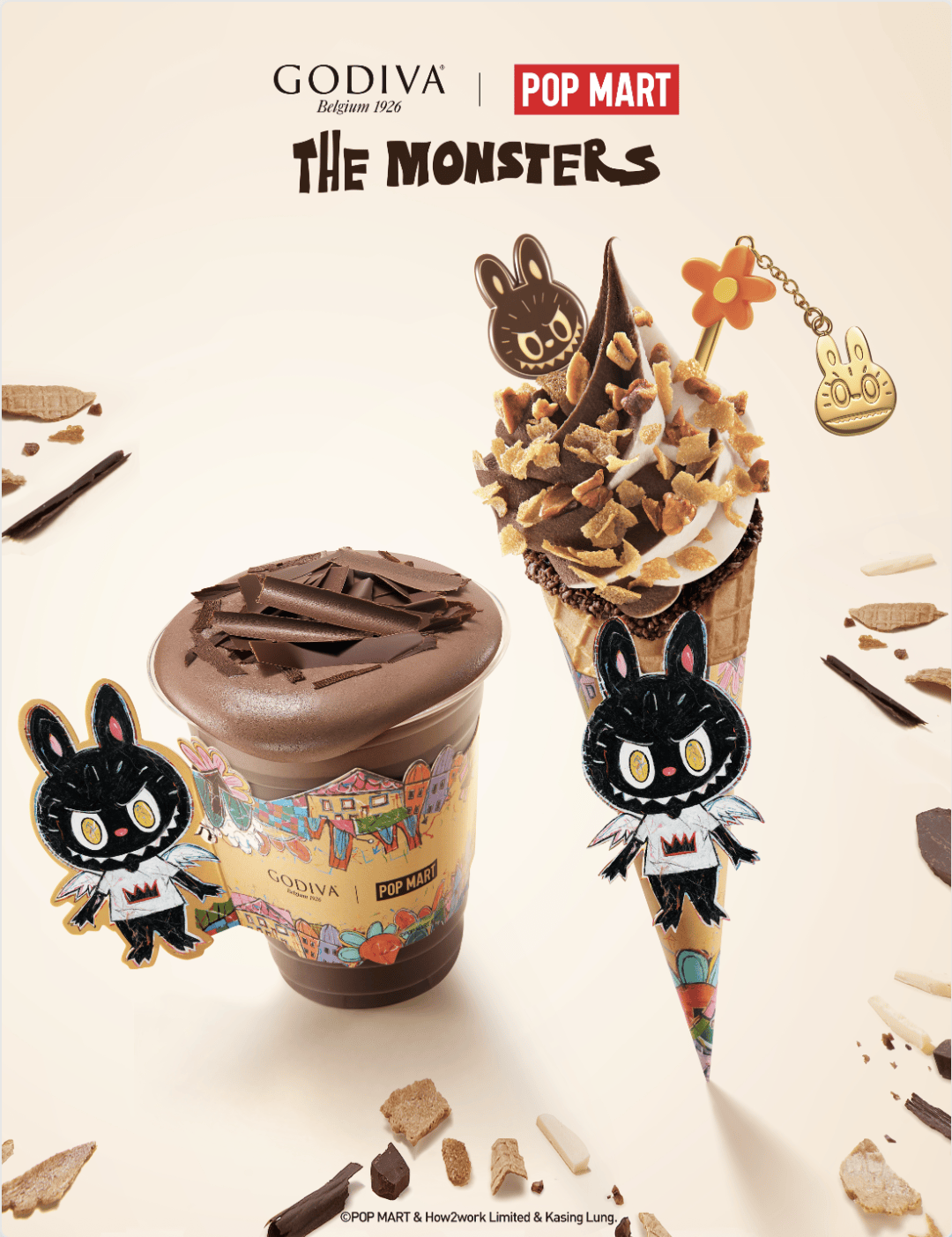 GODIVA歌帝梵携手POP MART泡泡玛特旗下超人气IP THE MONSTERS官宣联名,首波GODIVA × LABUBU联名冰品系列一经推出便引发热烈反响,一众巧克力爱好者跟随森林精灵LABUBU,步入GODIVA的巧克力魔法秘境,沉浸体验清醇可可滋味。
