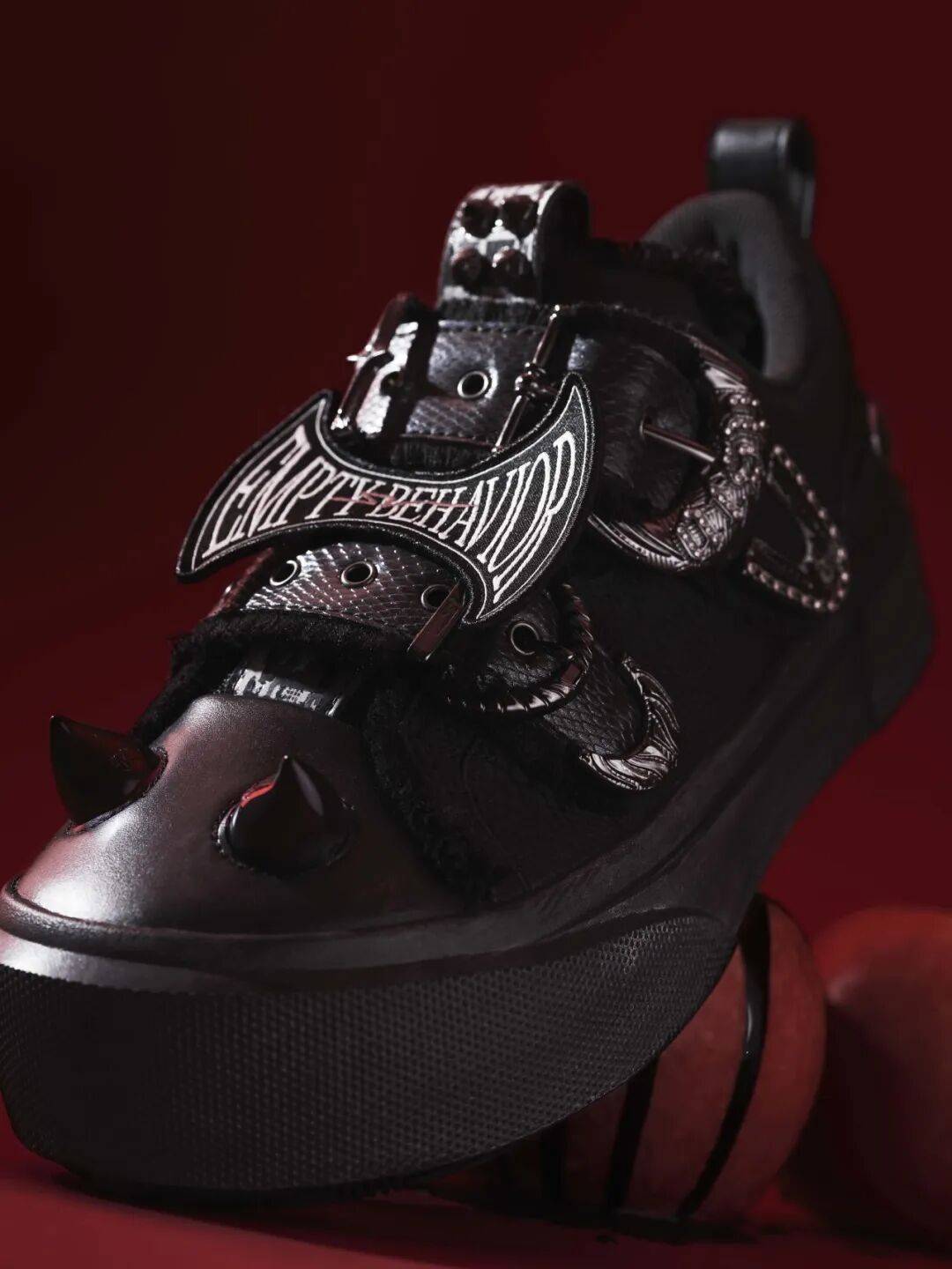 此前于ANTA SNEAKERVERSE(以下简称ATSV)「eclosion·展翼」主题大秀上,由“恶魔”舞者在开场表演中惊艳首穿,并引发全网猜测的神秘鞋款——「ATSV Lilith 莉莉丝」,近日正式宣告寄生登陆。其颠覆性的造型与强烈的视觉标识,迅速成为社交媒体热议焦点。从70-80年代朋克亚文化中汲取的设计灵感,将反叛精神转化为设计语言,以高级时装的手法重构运动板鞋,展现了ATSV在“运动内核”与“时尚演绎”之间探索边界的强大能力。